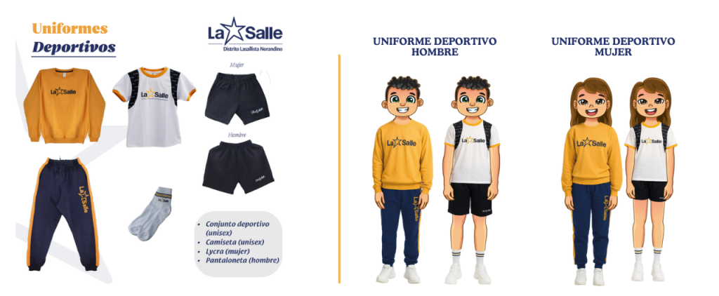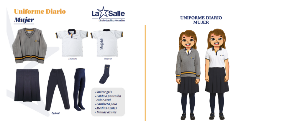 - 8vo EGB a 3ero Bachillerato: uniforme formal, diario y deportivo.