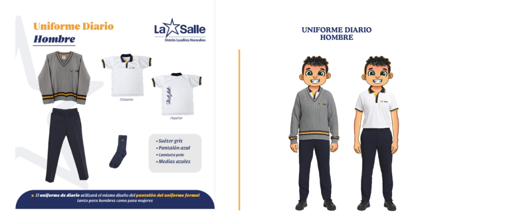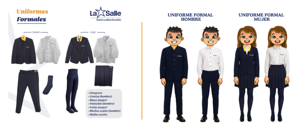 El uniforme tiene como objetivo, fortalecer la identidad y sentido de pertenencia a la Institución. Su uso es de carácter obligatorio, bajo las características establecidas por la Red La Salle en el Ecuador, que ha estandarizado el uniforme escolar en las veinte obras educativas lasallistas del país.