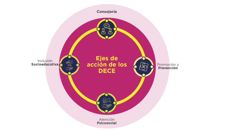 Son las líneas de trabajo que orientan la gestión técnica del DECE, ya que la formación integral de la población estudiantil implica un proceso educativo holístico que se enfoca en el logro de aprendizajes permanentes, significativos, útiles para la consecusión de los proyectos de vida de cada estudiante.